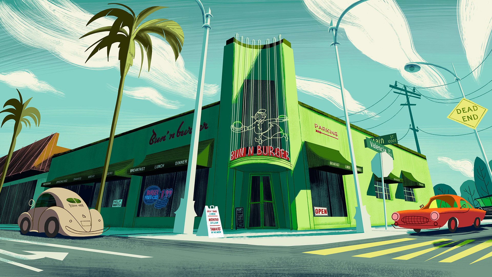 "Bun 'n Burger: Daytime and Nighttime" | Adobe Photoshop